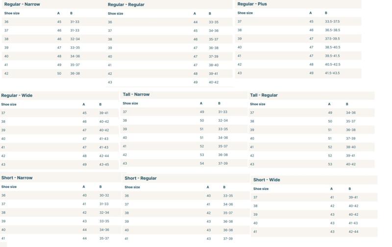 9 TAILLES DE MOLLET NARROW, REGULAR, PLUS, WIDE