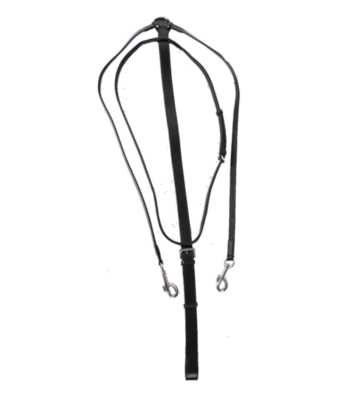 WALDHAUSEN - Enrênement Thiedeman ou Howlett en cuir  - Fixé à  la sangle, l'enrênement passe dans le mors et se fixe à des anneaux cousus sur les rênes.